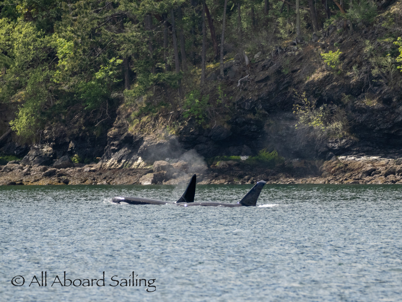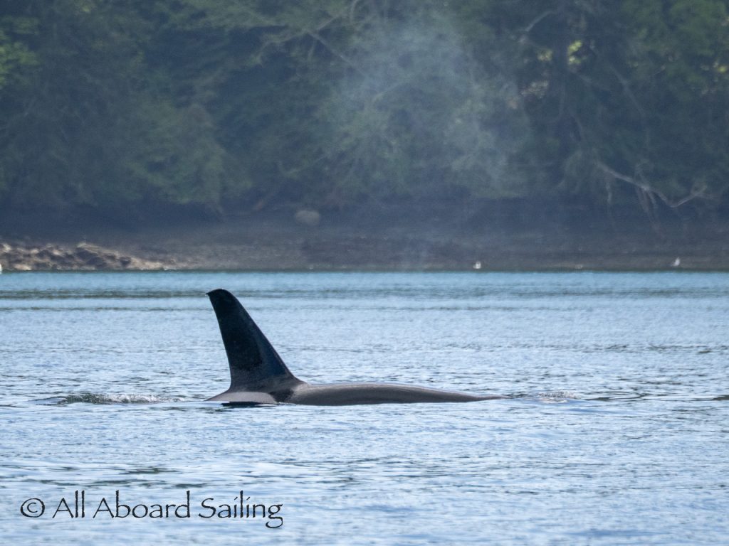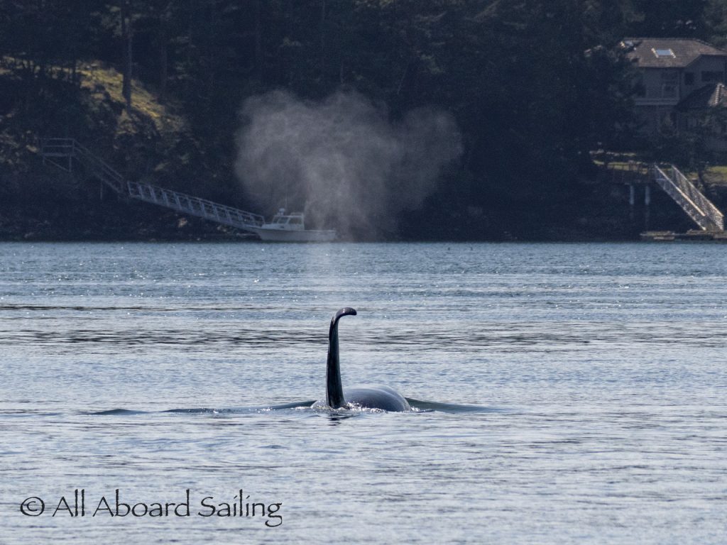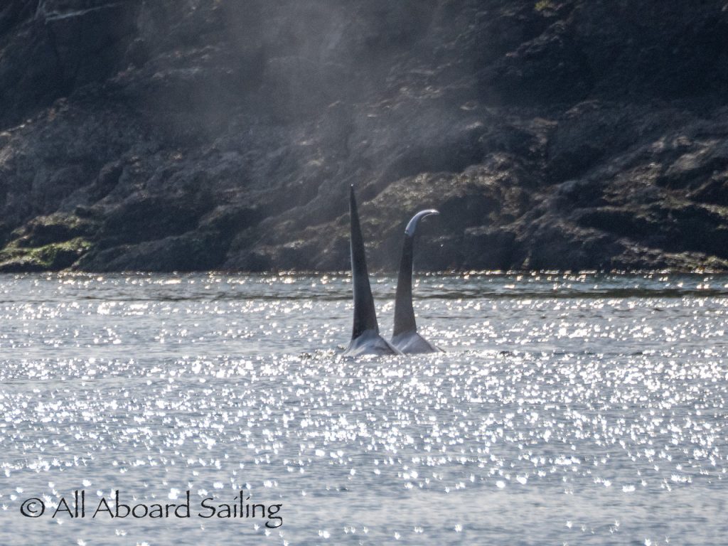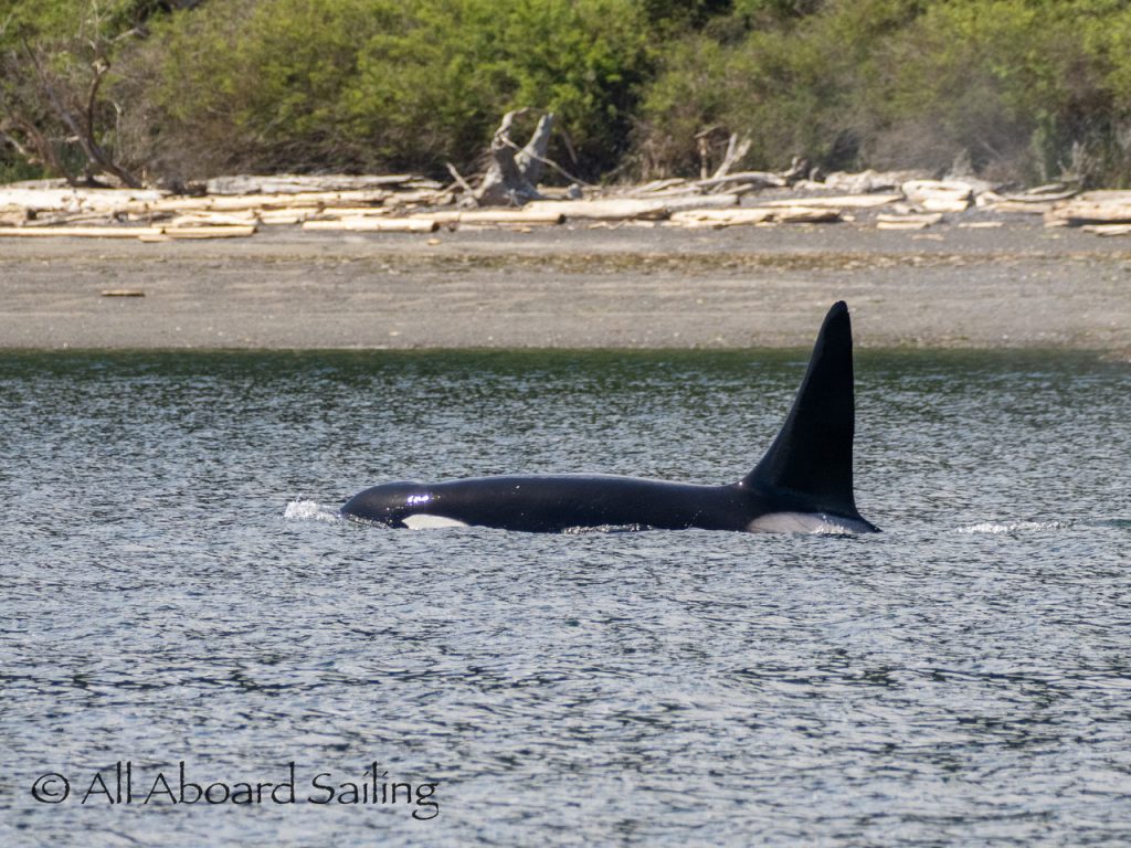 April 23, 2026 – Before casting off from Friday Harbor we had been monitoring reports of two male orcas in East Sound, Orcas Island. They were orcas we’d seen the day before southbound in Haro Strait known as T49A2 (born 2007) with T51 (born ~1981). We arrived on scene as the boys were southbound in East Sound hugging the beautiful coastline of Orcas island before taking Cayou Channel. Incredible views. Fun sailing. Birthday celebrations. A great day on the water.