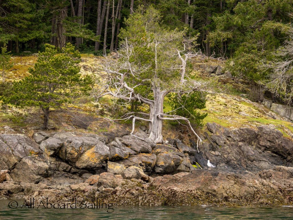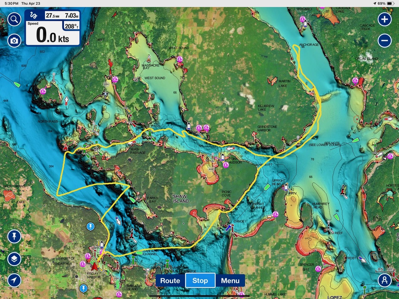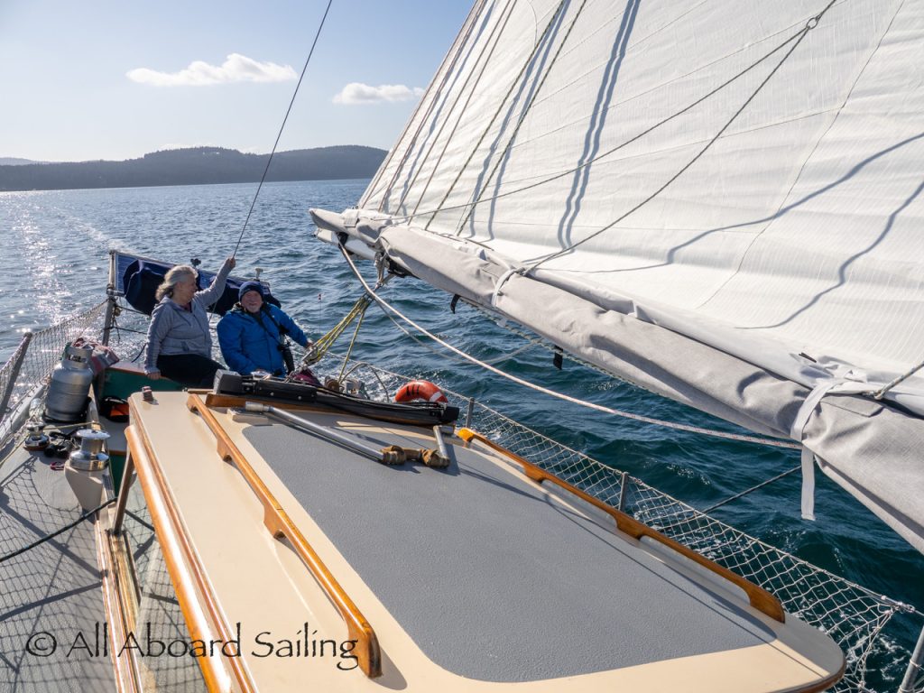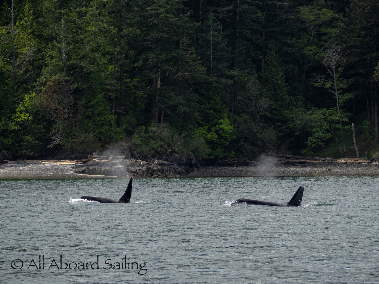 April 23, 2026 – Before casting off from Friday Harbor we had been monitoring reports of two male orcas in East Sound, Orcas Island. They were orcas we’d seen the day before southbound in Haro Strait known as T49A2 (born 2007) with T51 (born ~1981). We arrived on scene as the boys were southbound in East Sound hugging the beautiful coastline of Orcas island before taking Cayou Channel. Incredible views. Fun sailing. Birthday celebrations. A great day on the water.