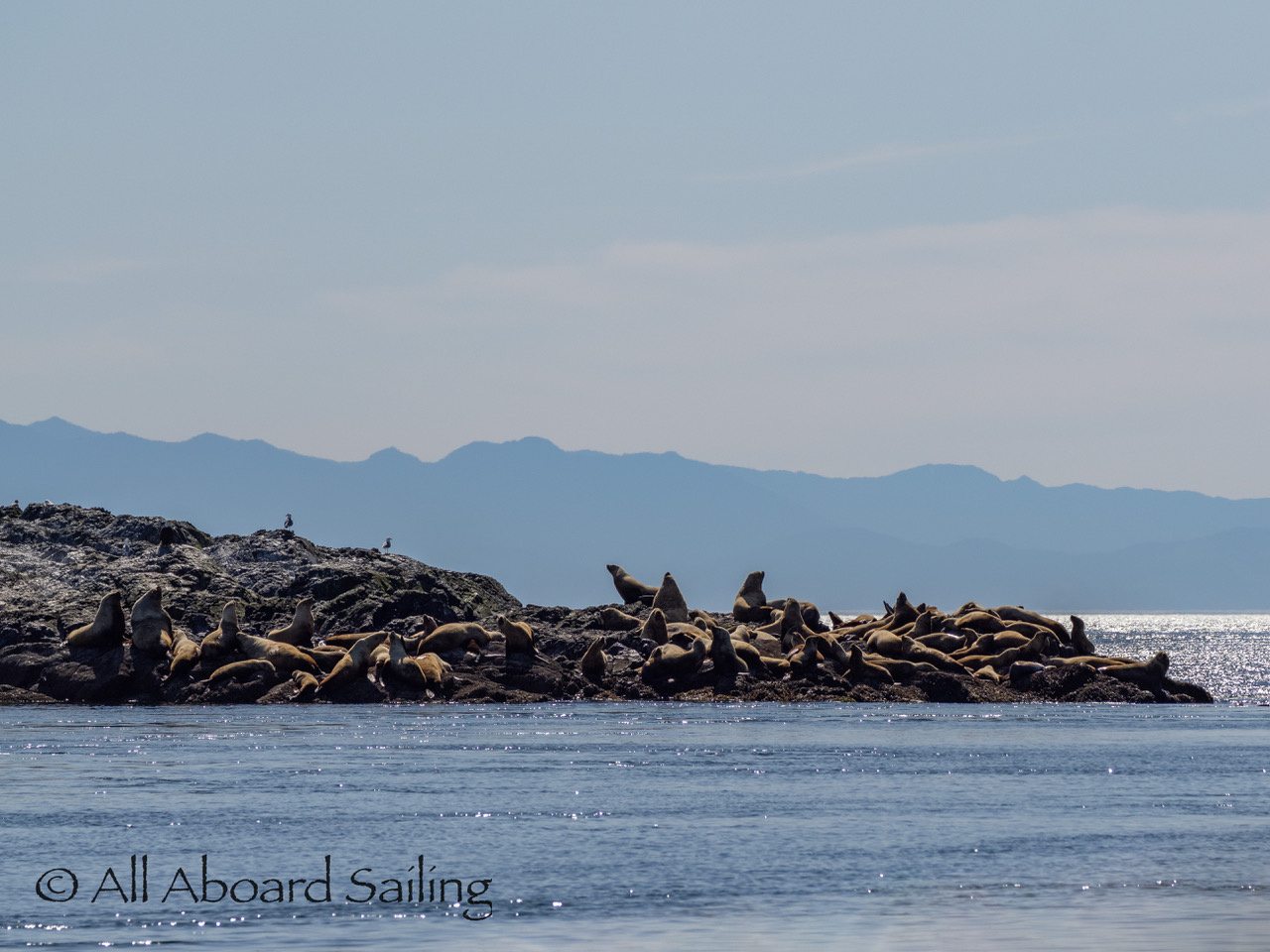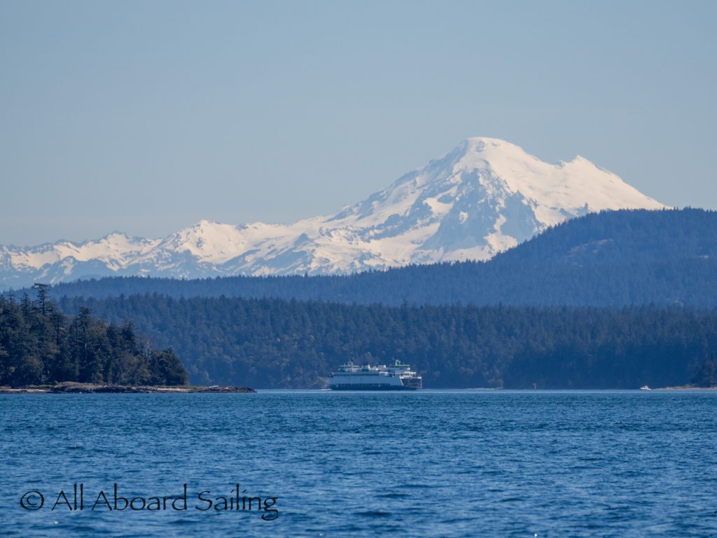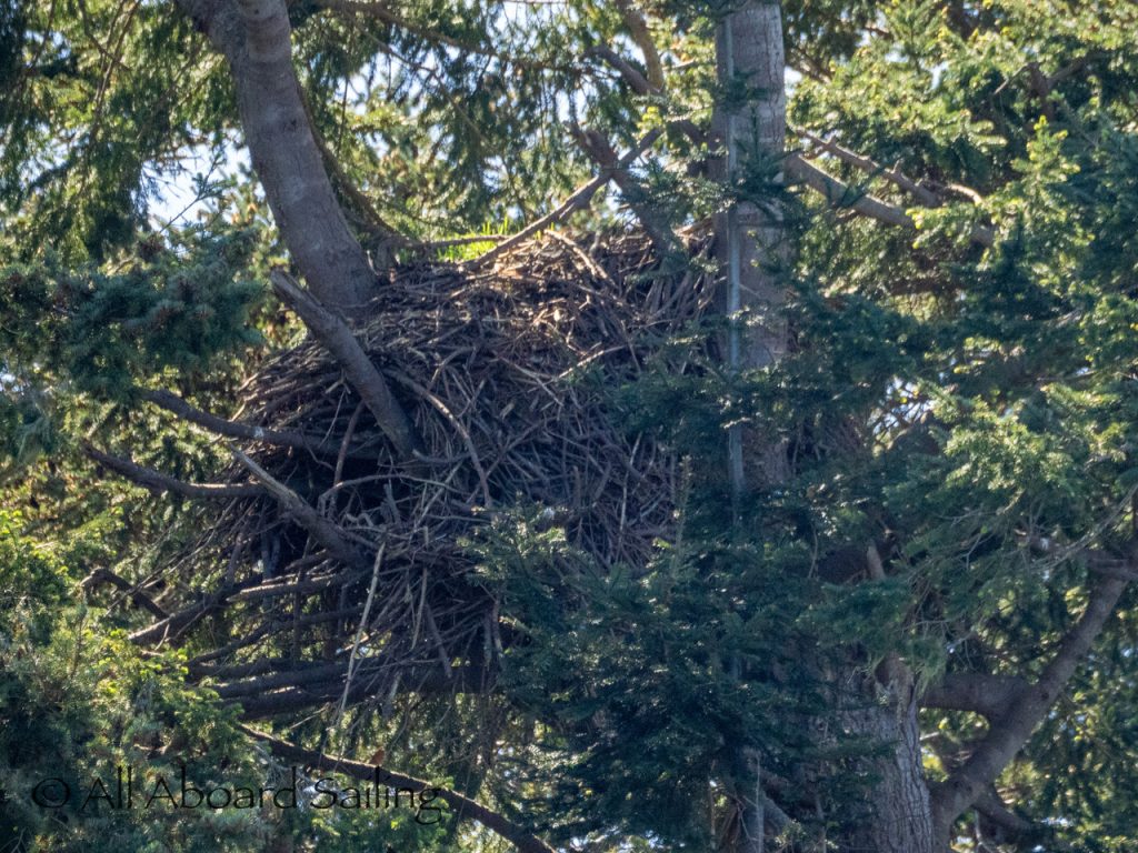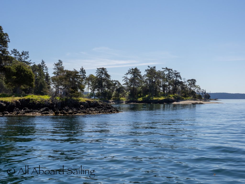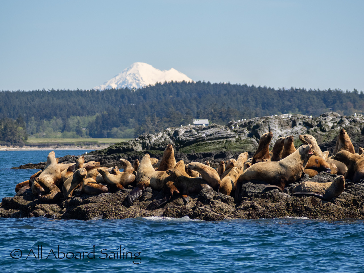 April 25, 2026 – Today we set a course for south. We drifted through the narrow channel by Turn Island passing harbor seals resting on the rocks. Near Deadman Island we saw an adult bald eagle chase a juvenile bald eagle and gave some great vocals after returning to its roost in a nearby tree. Winds were very light in San Juan Channel but picked up outside of Cattle Pass. We sailed quickly towards Whale Rocks where there were many small Steller sea lions. Presumably these are young females just returning here during their breeding season accompanied by several large males. This is a fairly new trend over the last 5 years or so. Typically all the sea lions which appear to be large males leave the area end of May and return after September. This new colony sticks around Whale Rocks for a few months.
