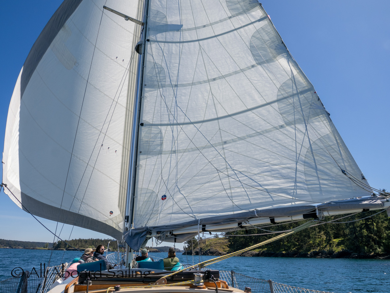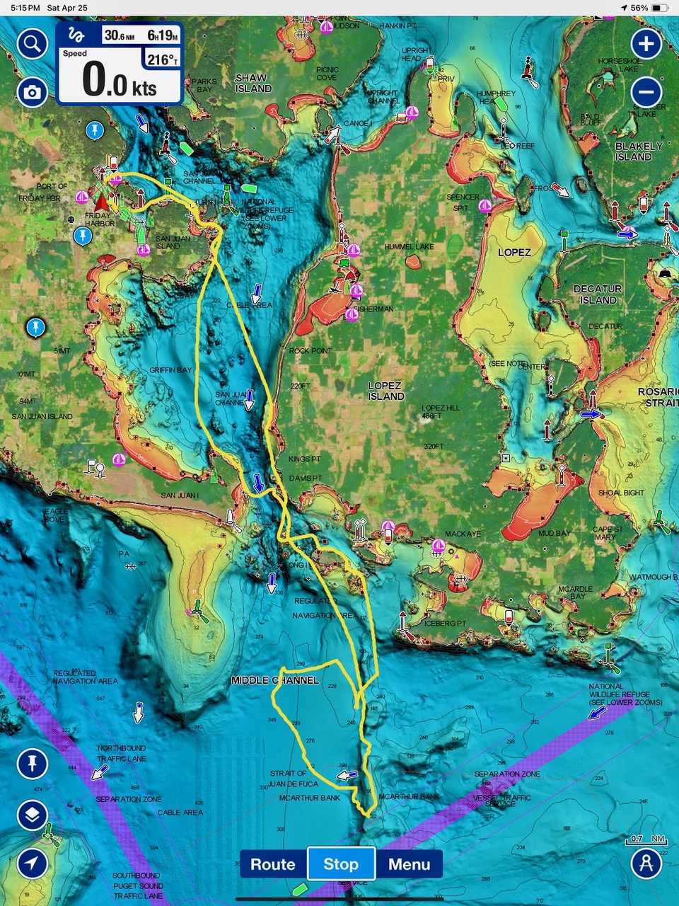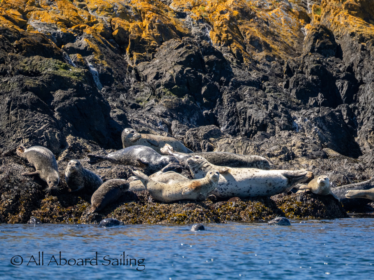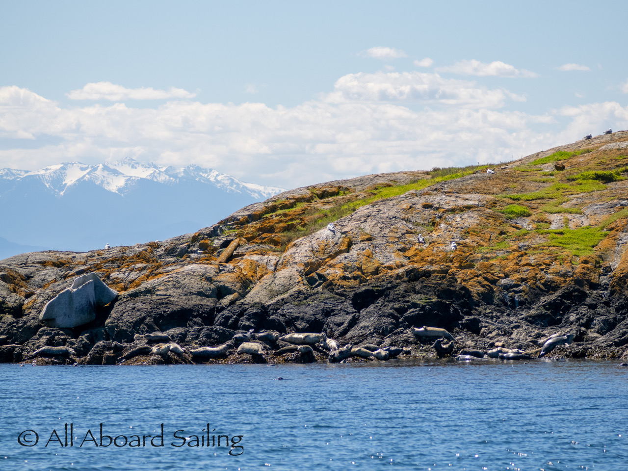 April 25, 2026 – Today we set a course for south. We drifted through the narrow channel by Turn Island passing harbor seals resting on the rocks. Near Deadman Island we saw an adult bald eagle chase a juvenile bald eagle and gave some great vocals after returning to its roost in a nearby tree. Winds were very light in San Juan Channel but picked up outside of Cattle Pass. We sailed quickly towards Whale Rocks where there were many small Steller sea lions. Presumably these are young females just returning here during their breeding season accompanied by several large males. This is a fairly new trend over the last 5 years or so. Typically all the sea lions which appear to be large males leave the area end of May and return after September. This new colony sticks around Whale Rocks for a few months.