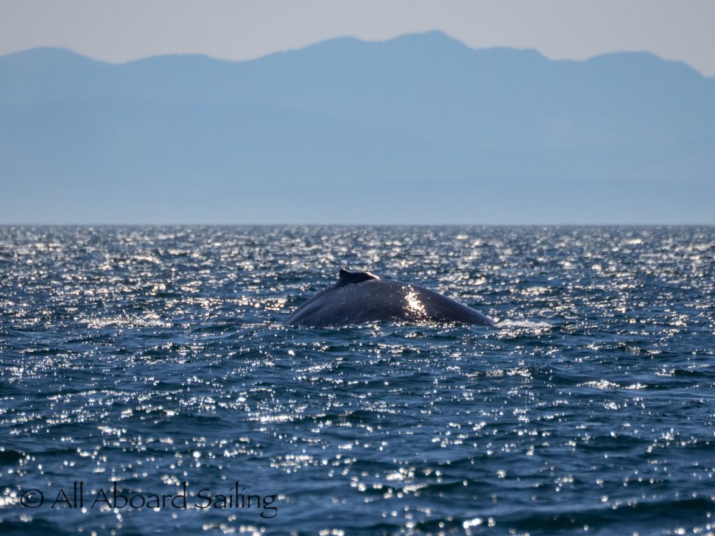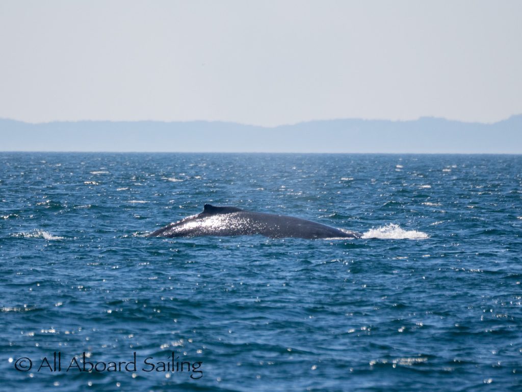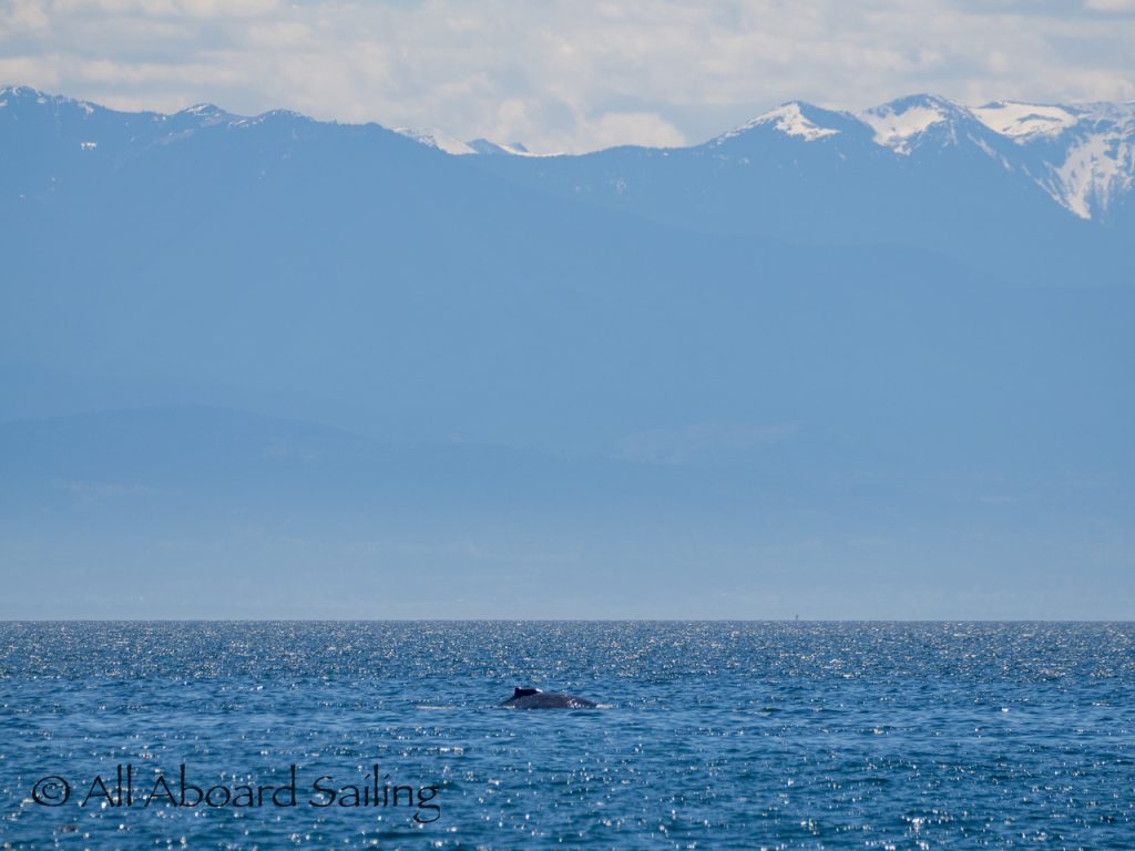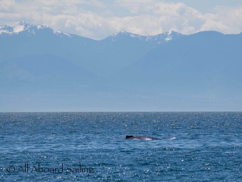 We sailed around Long Island where another eagle perched near its nest before continuing our course to MacArthur Bank in search of whales. In the distance Capt David spotted a humpback whale. It was quite tricky getting dialed in, but eventually we realised it was doing circles on the bank. The humpback whale was identified as BCX1800 “Gretzky”. We were treated to the humpback doing a beautiful cartwheel and several peduncle throws of its huge tail. Super cool! After some really nice views we left the whale to head back to Cattle Pass.